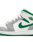 La Air Jordan 1 Mid SE "Grey/Pine Green/White" est un look épuré pour la chaussure de style de vie qui combine des matériaux en daim et en cuir. Issue de la collection 2021 de Jordan Brand, la variation "Grey/Pine Green/White" de la première chaussure signature de Michael Jordan utilise une palette de couleurs d'équipe inspirée des Boston Celtics, avec du vert et du blanc, et ajoute également du gris. L'orteil perforé et le panneau central apparaissent en cuir blanc. Des superpositions en daim Light Smoke Grey se trouvent sur l'avant-pied, les œillets et le talon. Un Swoosh en cuir Pine Green orne chaque côté et un logo "Wings" vert est situé sur le col. Des détails supplémentaires en Pine Green apparaissent sur le col en cuir et sur le Jumpman et le logo "Air" sur l'étiquette de la languette en nylon blanc. Une semelle intermédiaire bicolore blanche et une semelle extérieure en caoutchouc verte complètent le look.